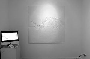 L’idée que j’ai voulu évoquée est celle du trajet quotidien. Pour cela je me suis inspirée du trajet que je devais faire il y a deux ans pour me rendre à ma prépa à Paris. 1h30 de voyage, le matin et le soir: voiture, bus, train, métro. Ces transports en commun étaient devenus mon quotidien. Depuis que je suis à Caen, mon trajet dure 7 minutes, et je le fais en vélo, en longeant l’Orne. C’est ce paradoxe que je vais tenter d’illustrer à travers mes découpages et mon installation.