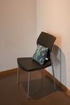 - Réalisation d'un coussin brodé où les visages et la carte de la zone choisie font office de motifs. Les couleurs choisies sont le bleu, le vert et le jaune des sièges du réseau Twisto (bus & tram). Les visages, brodés, deviennent cryptiques, difficiles à reconnaître, à percevoir même : ils ne sont que des inconnus, des informations, de la même manière qu'on traite les noms des rues, indifférence de la personne. Ce ne sont que des visages d'hommes. Où sont les femmes ? Visiblement, elles brodent.