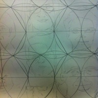 L'ensemble des traits de construction de la couche des mailles restent apparent, ils montrent que même avec des outils précis traditionnels (compas, règle) des erreurs infimes, mêmes celles invisibles à l'oeil nu, peuvent avoir un impact sur le dessin d'ensemble. Que cette vision comme celle du globe terrestre relève de conventions de représentation avec des erreurs assumées. Dans un second temps, cette carte est ré-humanisée en y plaçant dans les mailles hexagonales des portraits de résidents de la zone étudiée. Tous sont des habitants dont les photos qui ont servi au dessin sont issus des pages locales du Ouest France édition Caen. Les noms ne seront pas mentionnés car ce n'est pas le point de cette démarche. Par contre, il sera primordial pour mieux comprendre ce territoire de savoir que parmi ces "indigènes" se trouvent: des bénévoles, des cuisiniers, des enfants, des artistes, des élus, des anciens élèves, des musiciens, des acteurs, des défunts, des festivaliers, des syndicalistes, des membres d'associations, des gagnants de concours, des propriétaires de cabines de plages, des turfistes, des triathlètes, des grands reporters, des randonneurs, des boulistes, des membres de clubs de l'amitié, des participants d'un repas de rue, des retraités, des animateurs culturels, des kayakistes, des jeunes investis pour l'écologie, des filles et fils de, des étrangers, des scénaristes et metteurs en scène, des vétérans, des humoristes, des ados, des licenciés, des peintres, des chevaliers, des gendarmes, des touristes, des passionnés, des colombophiles, des marionnettistes, .... nous sommes ici entre l'inventaire à la Prévert et l'appel de Coluche en 1981 mais cette liste représente les habitants de ce territoire. Nous apprennent qui ils sont et ce qu'ils font.