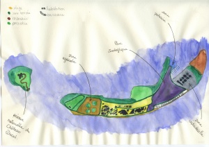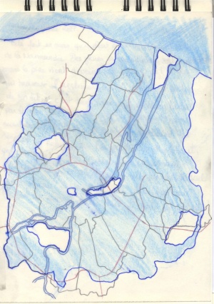 Le projet principal est de mettre en évidence les problèmes de la mémoire, les limites, le paysage qui change. Ainsi, la réalité sera indexée sur une échelle de temps, bons et mauvais usages du temps réel. On peut dire que ma carte est à la fois une certaine imposture et authenticité de ce lieu. Ce qui était important c'est de créer des détails sur la carte, car un monde vu de lion n'a pas les mêmes critères de vérité lorsqu'il est vu de près. Je considère donc que cette carte peut être lu aussi bien de loin que de près.