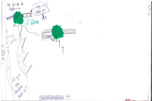 Tout au long de notre travail, nous avons fait le choix de nous positionner en tant que piéton.nes touché.es par la singularité de la promenade Caffarelli. Elle est en effet un lieu de rencontre de nombreuses trajectoires piétonnes entre Caen, Mondeville, Hérouville, Colombelles et les différents points de la Presqu'île. Nous avons ainsi souhaité axer nos travaux sur la mise en avant des liens entre le Cours, l'Orne, l'allée d'arbres et le ciel. Nous nous questionnons alors sur un aménagement du Cours Caffarelli qui favoriserait les trajectoires piétonnes et cyclistes en s'appuyant sur les éléments existants que sont l'eau et les arbres, et en les sublimant. En invoquant l'imaginaire d'une promenade paisible en forêt au bord de l'eau - à l'instar de l'identité historique du Cours Caffarelli - nous proposons ainsi d'aboutir à un aménagement pacifié, agréable et stimulant de cet espace.