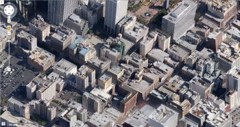 En reprenant l'interface de google earth, j'ai donc réalisé une ville américaine typique, post-apocalyptique. À force de ne se servir que d'internet pour communiquer entre nous on finira par ne plus se soucier de ce qu'il se passe à l'extérieur; Dans un premier temps on n'apportera plus d'importance à la météo, puis se sera au temps qui passe et enfin à l'état de notre planète. Les satellites qui s'occupent de capturer les images pour Google Earth ne se sont, eux, jamais souciés du temps qui passe mais ils finiront peut être par nous le rappeler avec les images mises à jour régulièrement et exposant la détérioration de notre planète.